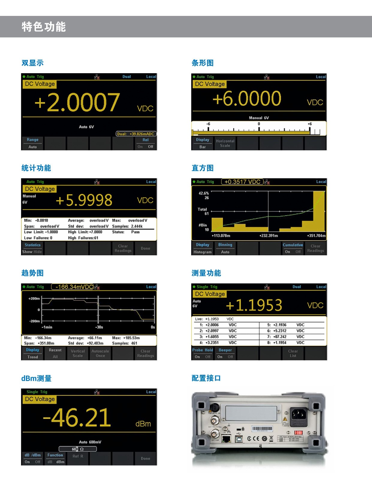 ● 最大值、最小值、平均值、標(biāo)準(zhǔn)差、相對測量、條形表,直方圖,趨勢圖,dB/dBm,限值等