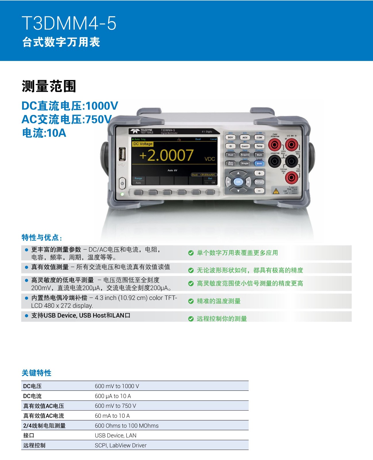 力科T3DMM4-5四位半臺式數(shù)字萬用表1000V,10A