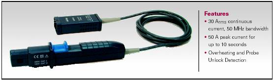 CP030的細(xì)小外形設(shè)計(jì)非常適合于集成度日益提高的電路板測試。小巧的鉗口可以深入到狹窄的空間中,夾緊最大5mm的電流導(dǎo)線,測試30Arms持續(xù)電流測試和50Arms的峰值電流,帶寬50MHz。