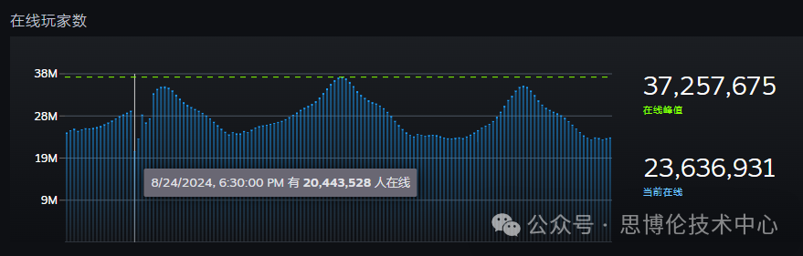2024年8月25日晚上,根據(jù)SteamDB的數(shù)據(jù)顯示,Steam平臺(tái)在線用戶數(shù)再次創(chuàng)下了新高,突破了3700萬,來到了37,266,324人。該值即為Steam平臺(tái)最大并發(fā)連接數(shù)。