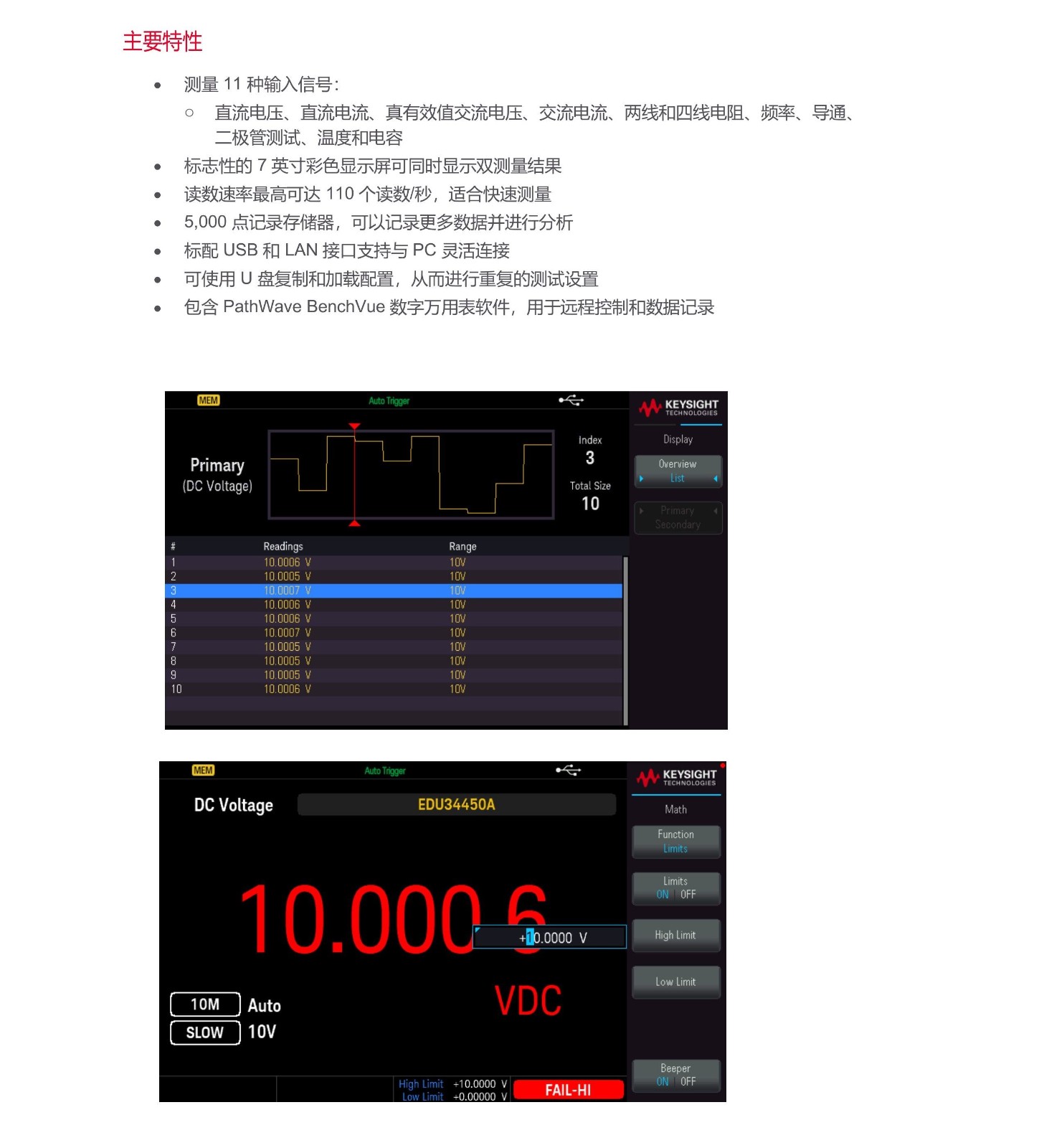 是德EDU34450A五位半雙顯示數(shù)字萬用表