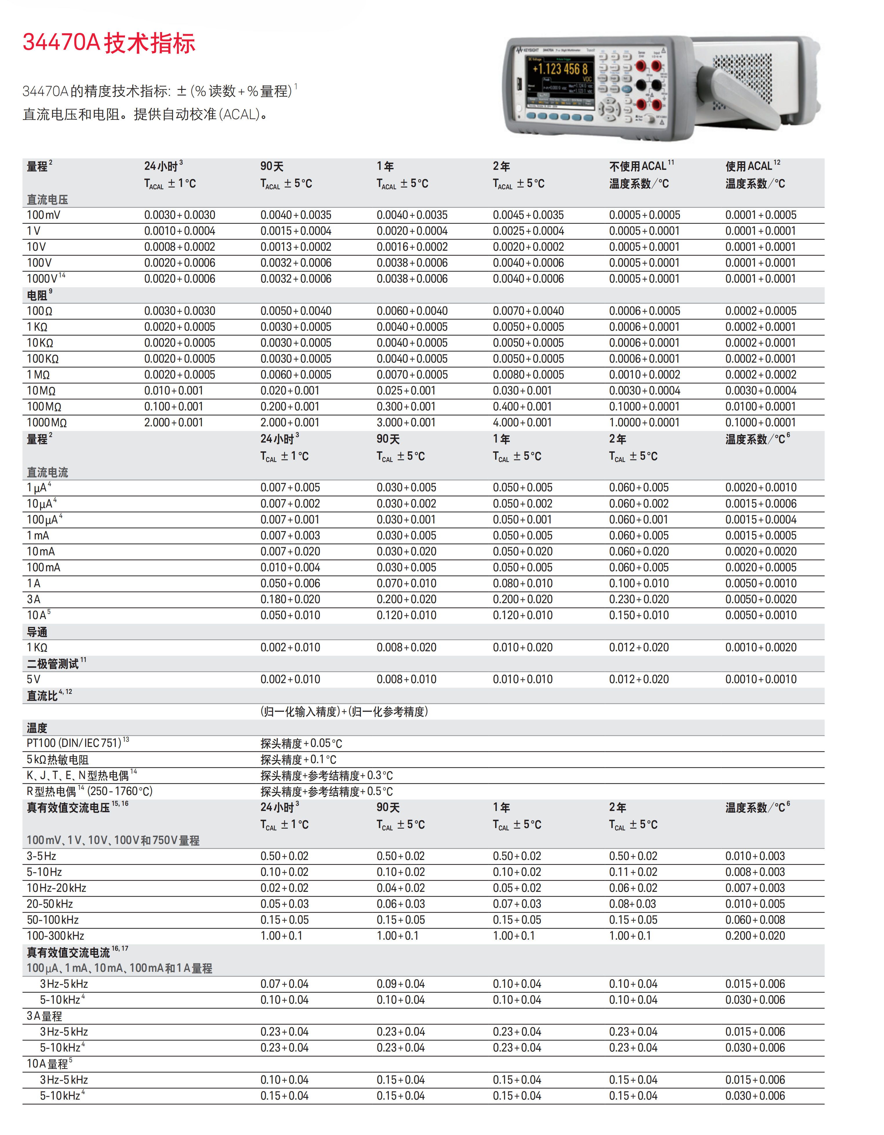 34470A 7 位半數(shù)字萬(wàn)用表主要特性與技術(shù)指標(biāo)
