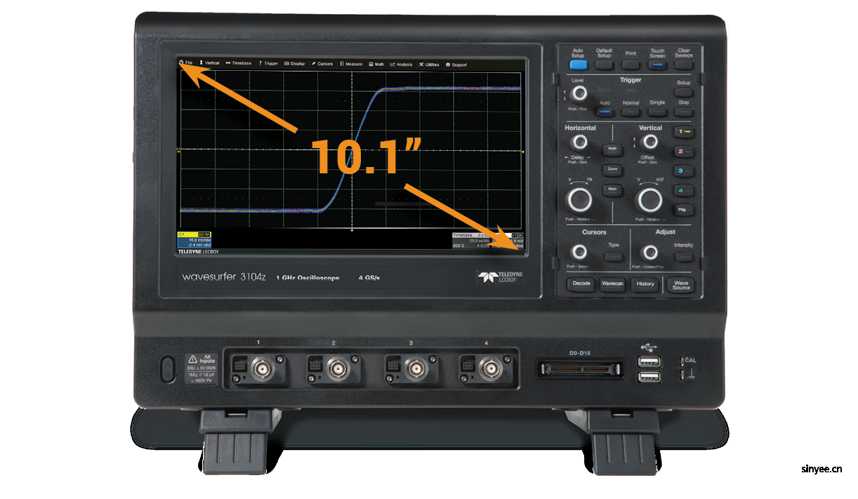 大型電容式觸摸屏可實(shí)現(xiàn)訪問及快速響應(yīng)的觸摸操作。 10.1 英寸顯示屏比競(jìng)爭(zhēng)產(chǎn)品大 30%,提供更大的波形查看區(qū)域。