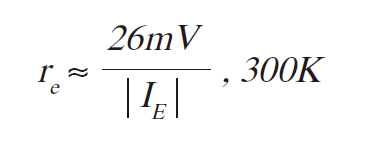 其中上下電壓由下標(biāo)u和l表示。它們的區(qū)別在于輸入和輸出差分電壓。放大器的上側(cè)和下側(cè)都會(huì)影響總增益,所以在Av的BJT增益前面x2。因?yàn)?/span>RE(R4254)非常接近BJT的動(dòng)態(tài)發(fā)射極電阻re,所以更好的增益近似是在增益方程的分母中將RE增加2 x re,其中: